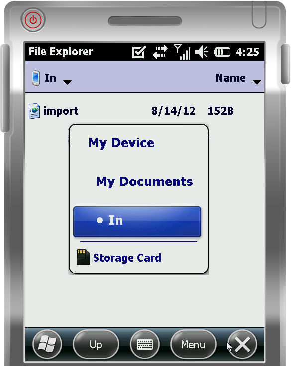 Ezt jelenleg csak úgy lehet megoldani, ha kézzel átkopizom az eszköz "My Device\My Documents\In" mappájából az import.xml-t a "My Device" mappába (az eszköz gyökér mappája), mert az adatgyűjtő program csak innen olvassa be.
