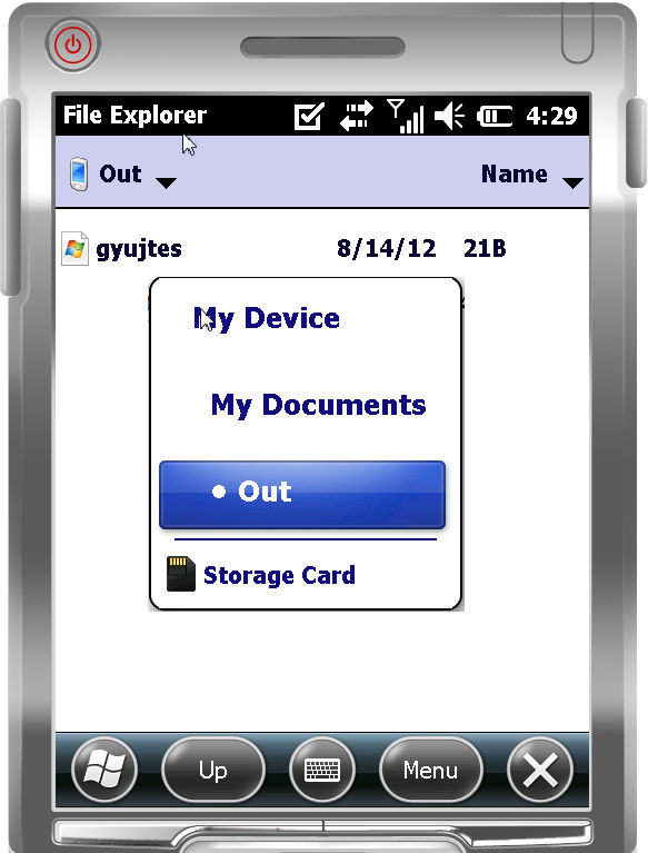A program a gyujtes.bar fájlt (neve megváltoztatható, kiterjesztése nem) a "My Device" mappába teszi, át kell kézzel másolni a szinkronizálásban részt vevő "My Device\My Documents\Out" mappába.