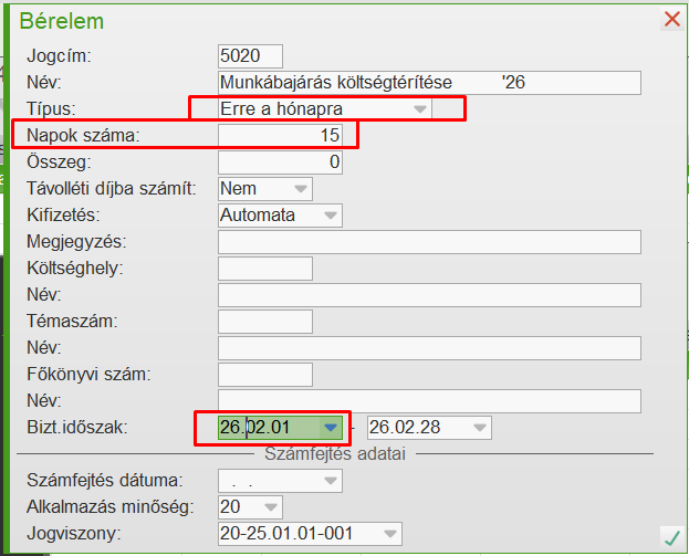 A J5020-as bérelemet "Erre a hónapra" típussal kell rögzíteni.