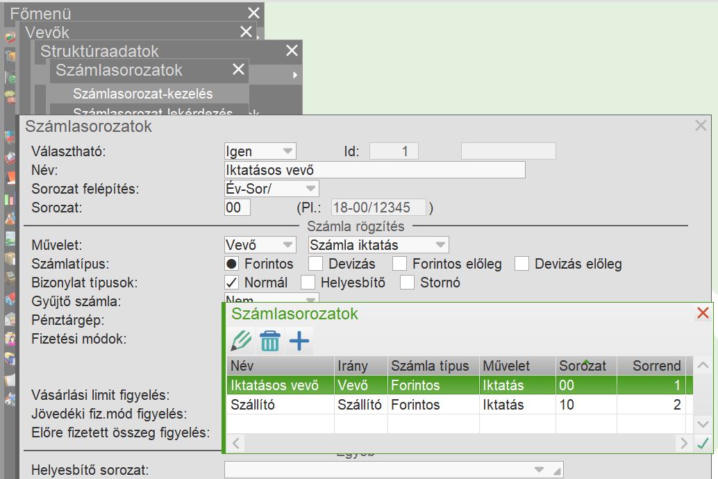 - Számlasorozatok használata a számlázás, számlaiktatás során.