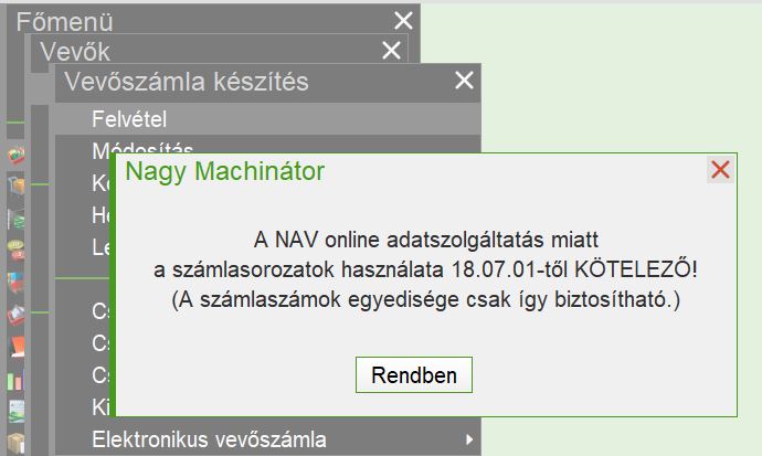 Amennyiben nem hozunk létre számlasorozatokat, nincs lehetőségünk számlarögzítésre egyik modulban sem.