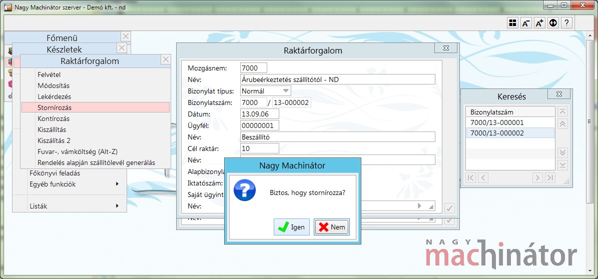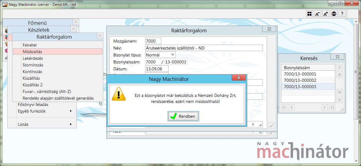 Ha már egy árumozgatás bizonylat fel volt küldve, akkor a bizonylat már nem módosítható.