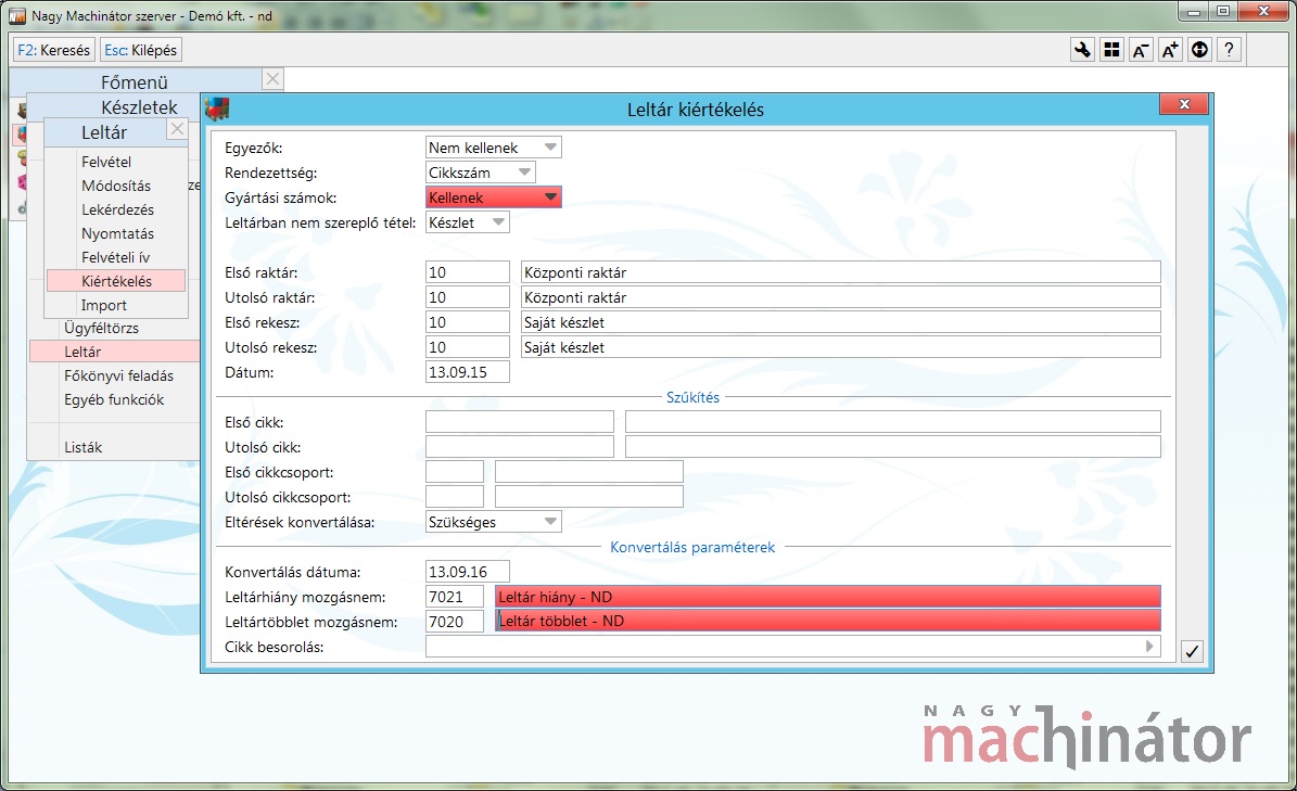 A leltár kiértékelése során olyan mozgást kell használni, amely a struktúra adatokban össze lett kapcsolva az ND megfelelő mozgásnem kódjaival.