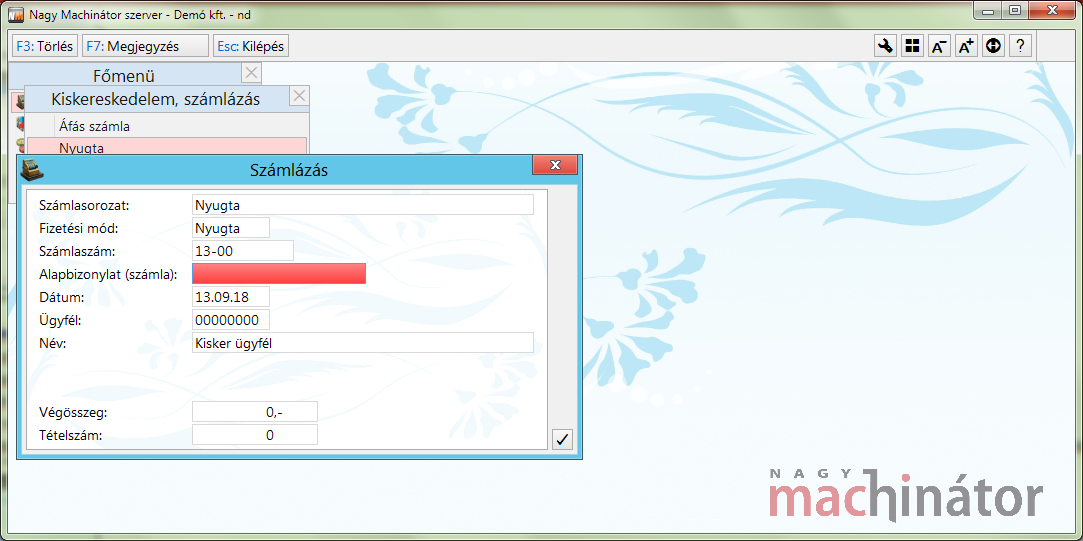 A Kiskereskedelem, számlázás / Nyugta menüpontban kell választani.