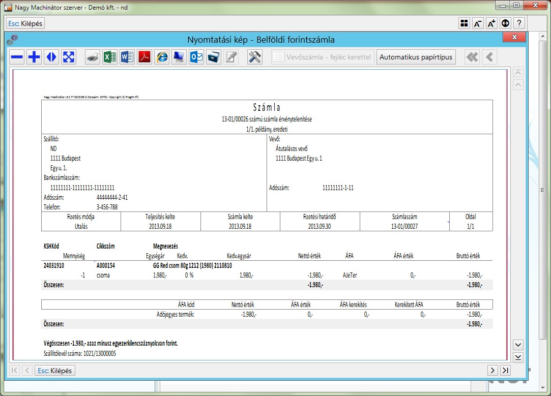 Stornózásnak azt tekinti a program, ha a teljes bizonylat stornózásra került.