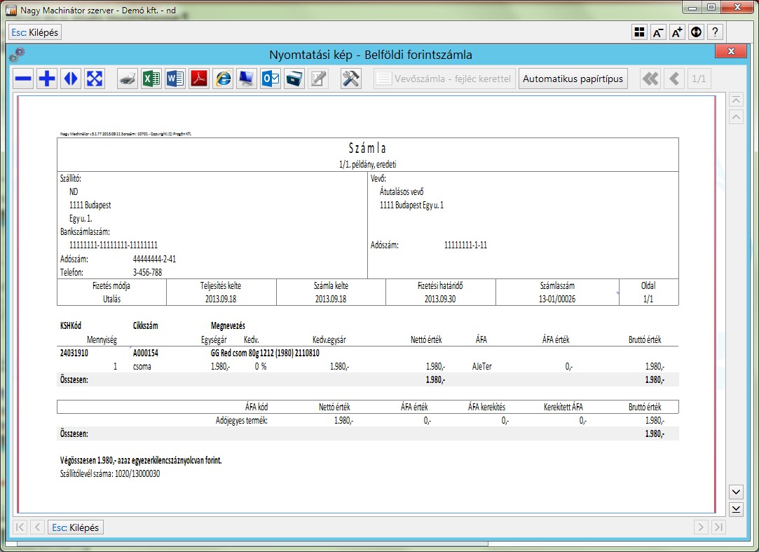 A tételek ablakban a számlát F4:Nyomtatás/Lezárás funkcióval lehet befejezni.