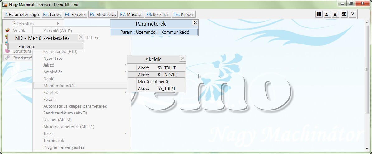 Az ND menüvel nem lehet adatállományt karbantartani, menüt módosítani. Egyéb jogokat pedig az ügyfél kérésére ki lehet belőle venni.