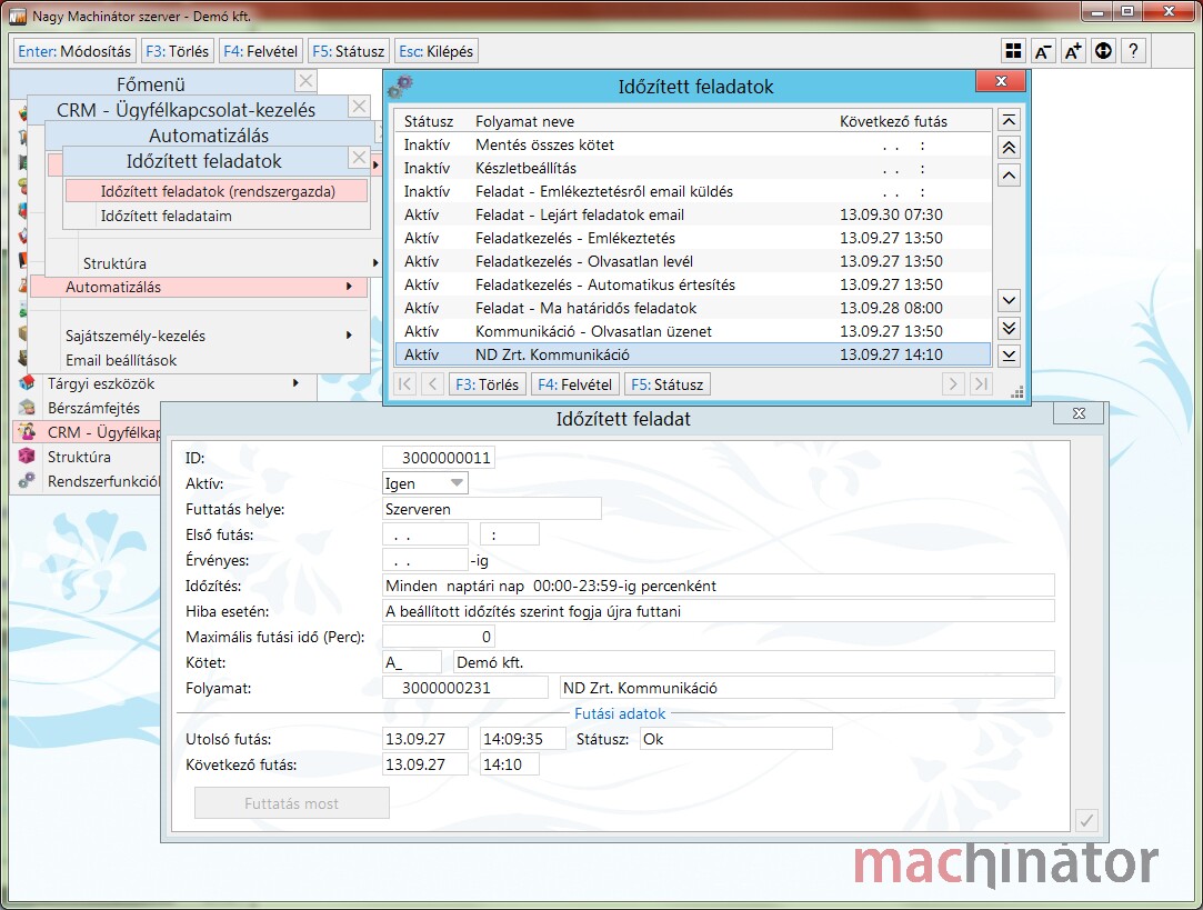 Aktiválni kell az ND kommunikációt az időzített feladatok funkcióban (BIGMAC menü)