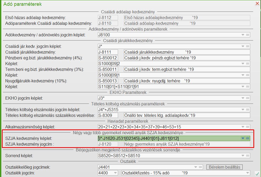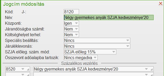 A jogcímképlet szerkeszthető, egyéni jogcímekkel kiegészíthető.