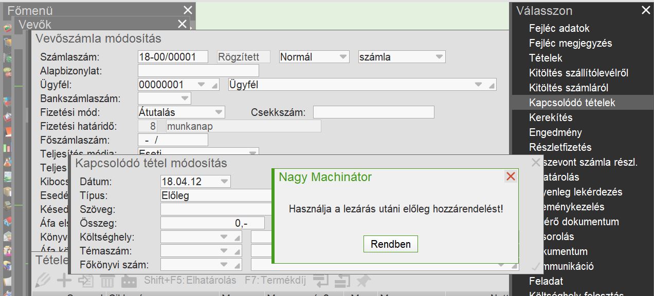 Előleg kapcsolódó tétel használata |