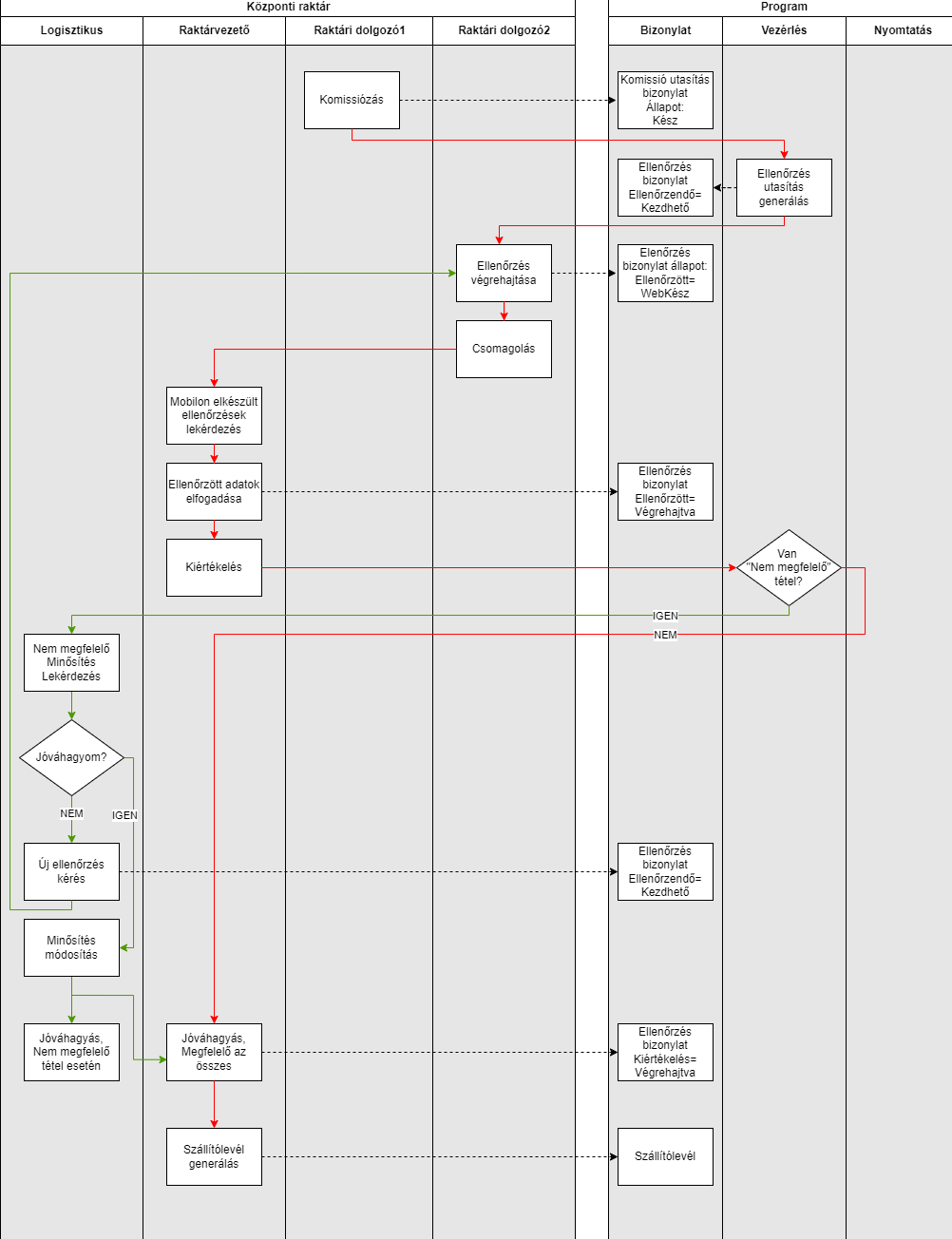 Alapvető igény egy logisztikus számára, hogy minden eszközzel biztosítani tudja, hogy - a vevők azt az árut és olyan mennyiségben kapják meg, amit rendeltek, - valamint a nyilvántartott raktárkészlet nem térjen el a fizikai készlettől. Ezeknek az alapvető igényeknek a biztosításra szolgál az ellenőrzésbizonylat a Nagy Machinátorban. A program eddig is tartalmazott ellenőrzési lehetőséget, azonban ennek a hátránya az volt, hogy a már legenerált szállítóleveleket lehetett vele ellenőrizni. Ezek a szállítólevelek már ténylegesen csökkentették a készletet és az ellenőrzés végrehajtásáig esetleg fals információk alapján nem megfelelő döntéseket lehetett hozni. (Pl.: Olyan lokációról vett ki a szállítólevél, olyan gyártási számokat, amelyekről az ellenőrzés során kiderült, hogy nem feleltek meg a valóságnak.) Az új ellenőrzési eljárás a programban folyamatosan fejlődő raktárirányítási rendszerhez illeszkedően készült el. A raktárirányítási rendszer fejlesztése során arra törekszünk, hogy az ellátási lánc egyes műveleteiben keletkező információk ott és akkor kerüljenek az ERP-be, amikor megszülettek. Ezt az alapelvet a digitális transzformáció eszközeinek igénybevételével lehet biztosítani, amelyet a web-alapú Nagy machinátor folyamatos fejlődése jelent a programunkban. Az új folyamatban az ellenőrzés a kitárolási utasítások végrehajtása után, de azok jóváhagyása előtt történik . Az ellenőrzést adatgyűjtővel, a web-alapú Nagy Machinátor böngészős felületén lehet végrehajtani, ezzel biztosítva, hogy a valóságnak megfelelő tételek kerülnek majd kiszállításra. Az ellenőrzés kiértékelését, és annak jóváhagyását az arra jogosult felhasználó Nagy Machinátor asztali számítógépre telepített alkalmazásában hajtja végre. A kiértékeléssel lehet megvizsgálni, hogy az ellenőr által talált áruk megfelelnek-e a vevő igényének, továbbá arra vonatkozó információkat is lehet látni, hogy nem volt-e ellentmondás a kiszedő és ellenőr jelentésében. Bármelyik szemponttal is van probléma, új ellenőrzést lehet elrendelni a folyamatban (akár többször is), ezzel biztosítva a céloknak megfelelő működést. A Nagy Machinátor jogosultságrendszerének köszönhetően arra is lehetőség van, hogy probléma esetén az ellenőrzés eredményét csak az arra jogosult felhasználó tudja végrehajtani (lásd alábbi folyamatábrán, ahol eltérés esetén a raktárvezető helyett, a logisztikusnak van joga a végrehajtásra.