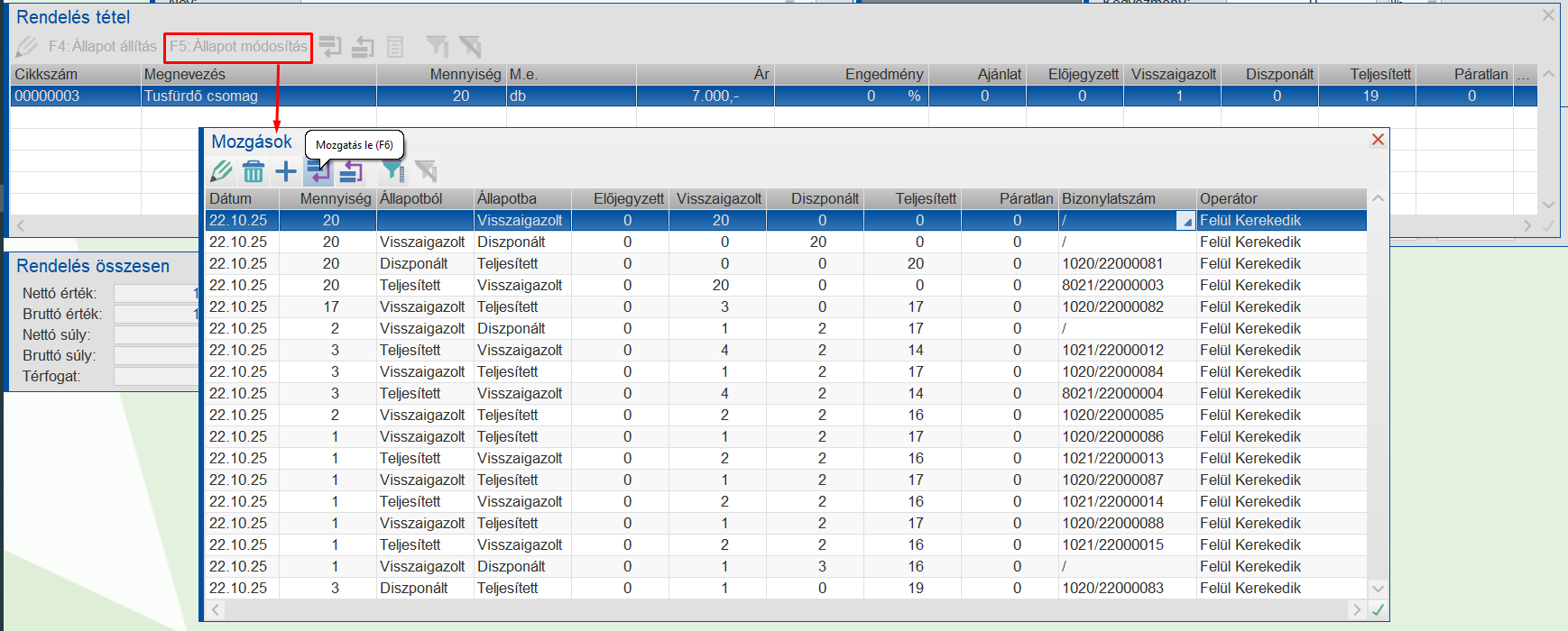 A 170-es verzióban a rendelésállapotok adatállományba történő generálásának szabályai megváltoztak. Ezek a változások a felhasználó számára nem jelentenek változásokat a mindennapi életben, azonban az új szabályok olyan eseteket is le tudnak kezelni, amelyek bár nagyon ritkán fordultak elő, a régi eljárás nem tudta megfelelően kezelni. A legfontosabb tulajdonságok: - Eltárolja a rendelés mozgásai között a szállítólevél teljesítéseit is. - Szállítólevél stornó esetén a szállítólevélhez kapcsolódó egyéb állapotváltozásokat is visszavonja a program. - A rendelésmozgásokat tartalmazó állományban a kiinduló állapot is helyet kapott Ezzel áttekinthetőbbé vált a mozgásokat tartalmazó állomány, ami például riport készítések esetén jelenthet könnyebbséget. - rendezve lettek a vevővisszáruhoz kapcsolódó állapotmódosítások |