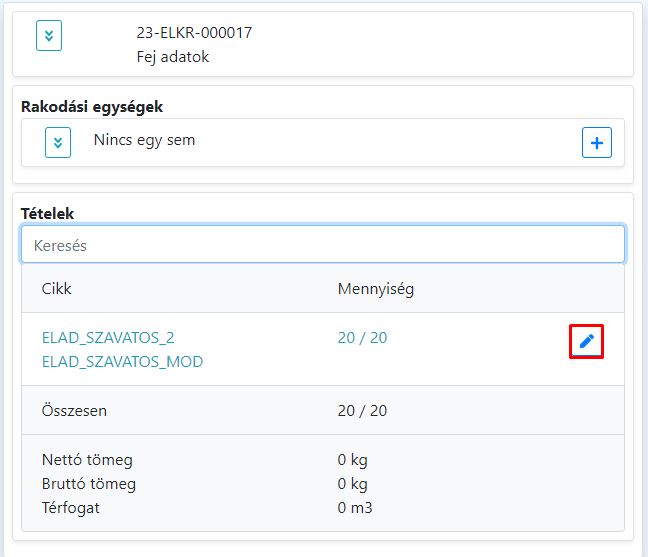 Az kiszállítási folyamatban található ellenőrzési fázis egyszerűsítésére készült egy új lehetőség a programban. A mobil Machinátorban végrehajtható leggyorsabb ellenőrzés a következő képen működik. Az adott tétel kiválasztása után (megnyomják a "ceruza" ikont lásd kép) a program kitölti a komissiózott mennyiséggel az ellenőrzött tételt. Amennyiben gyártási számos a termék, az komissiózott gyártási számokat is automatikusan felveszi a program. A tétel részletező ablakba alap esetben nem is lép be a program. Amennyiben eltérést talál az ellenőr, a "ceruza" ikon ismételt megnyomásával lehet a mennyiséget módosítani. |