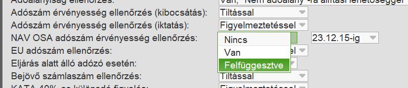 NAV OSA adószám ellenőrzés kikapcsolhatósága |