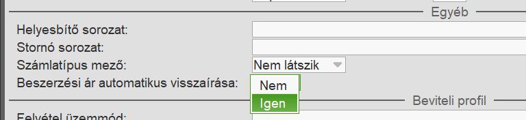 Automatikus beszerzési ár visszaírás a szállító/import számláknál |