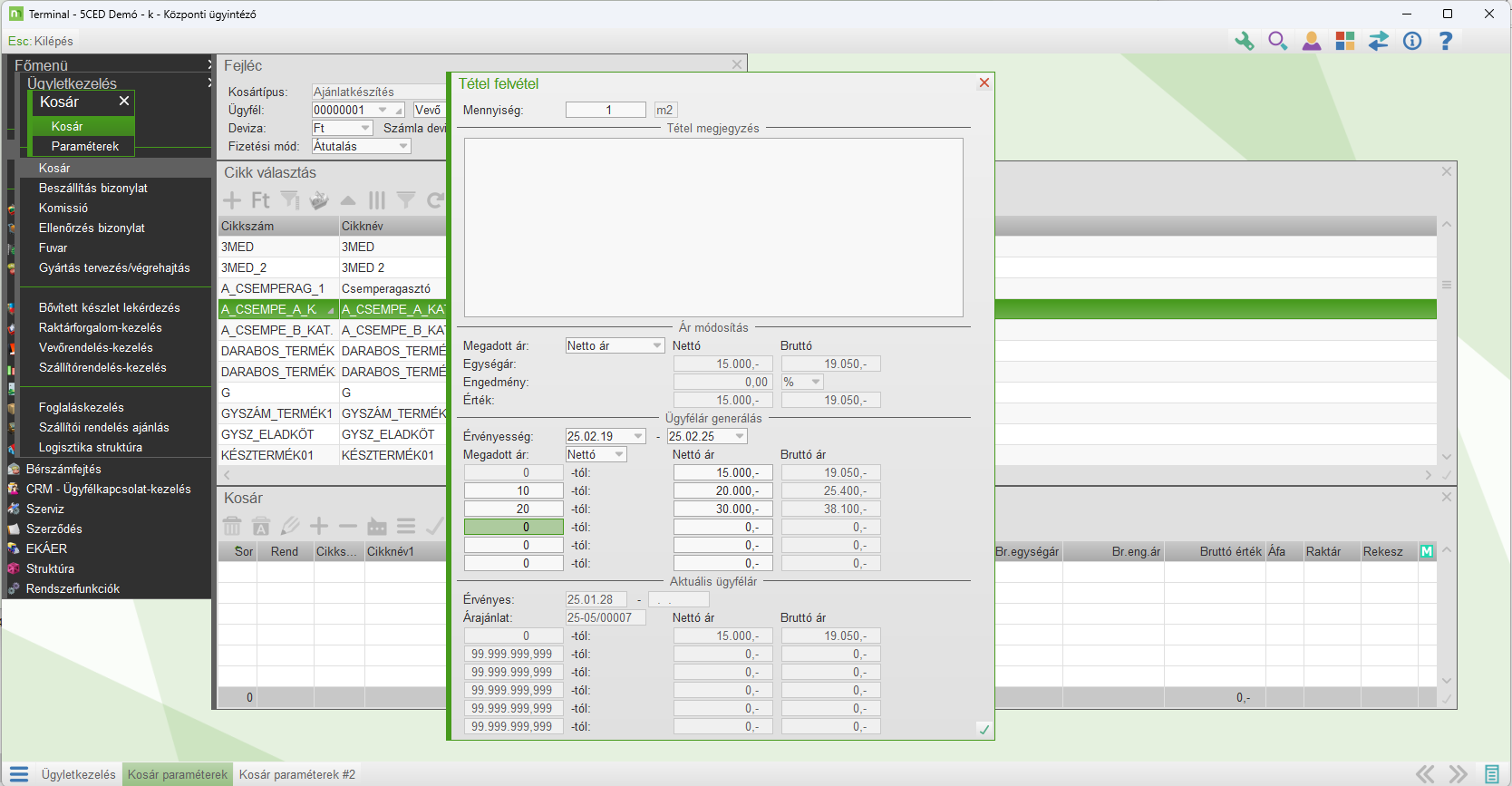 Mennyiségfüggő árajánlat és ügyfélár kezelés |