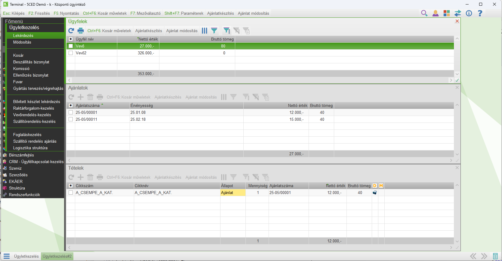 Az ajánlatokat az ügyletkezelés funkcióból lehet menedzselni. |