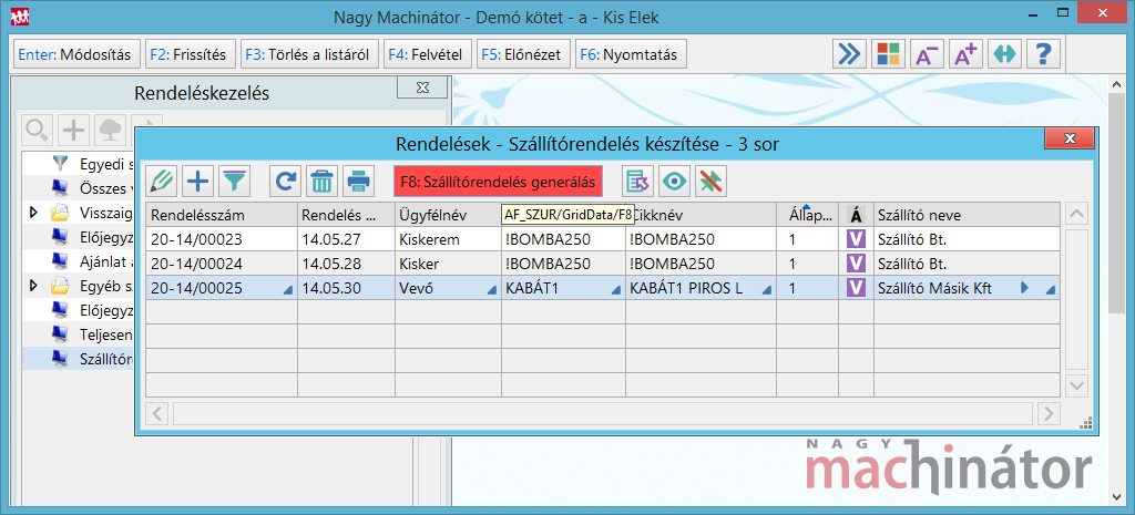 A Vevőrendelés-kezelés funkciót alkalmassá lehet tenni szállítórendelés készítésére. Akkor érdemes az alábbi módon szállítórendeléseket készíteni, ha a szállítótól csak a vevőrendelések kielégítésére szoktunk rendelni. |