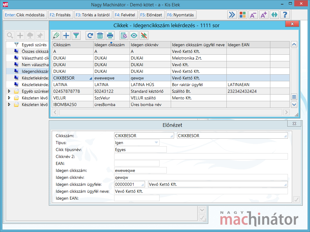 A Cikkkezelés funkciót alkalmassá lehet tenni szállítói cikkszámok lekérdezésére, szűrésére. |