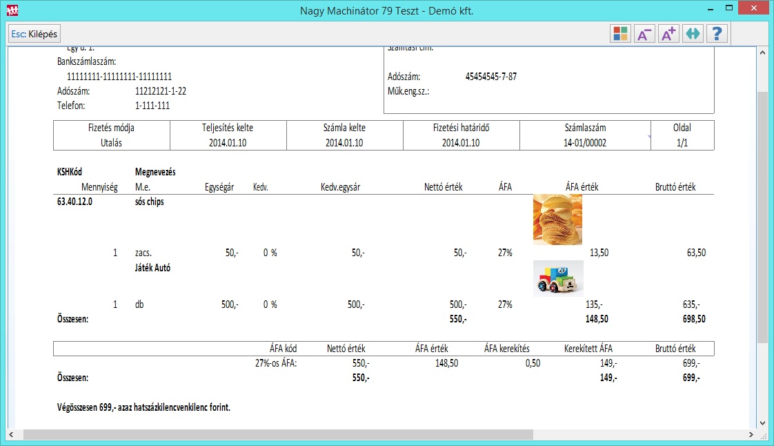 Bizonylatainkat, listáinkat tovább színesíthetjük a dokumentum modulba feltöltött képeinkkel. |