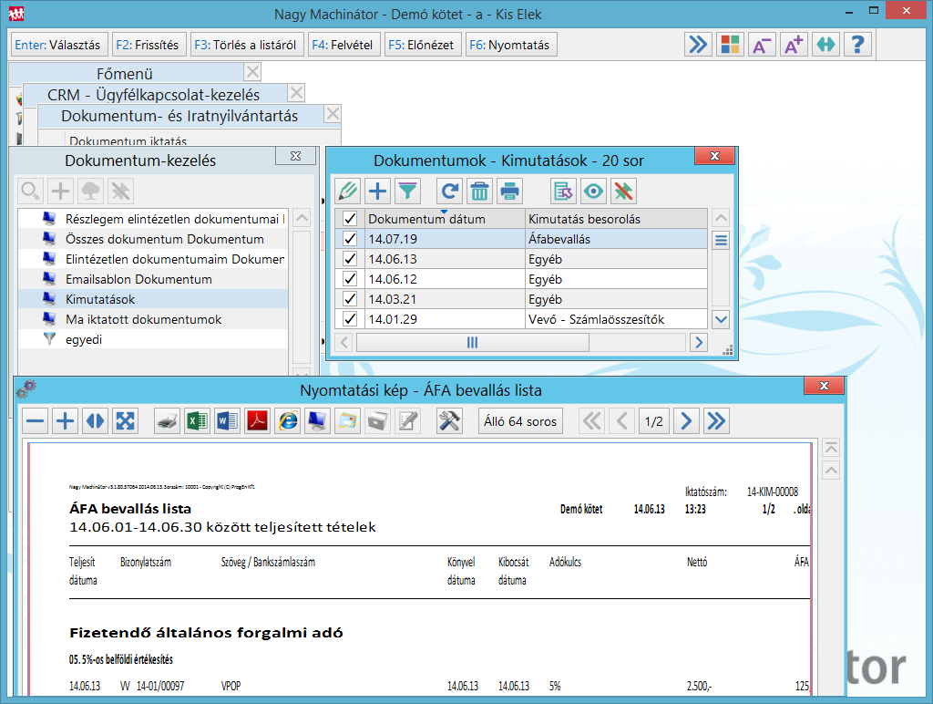 Iktassa a Nagy Machinátorban keletkezett kimutatásokat, bevallásokat két kattintással és akár küldje emailben azonnal tovább. Előnyei: - megspórólhatja a nyomtatással, szkenneléssel töltött időt. - a kimutatásokat bármikor elérheti néhány kattintással. - azonnal emailben tudja csatolni egyenesen a programból. |
