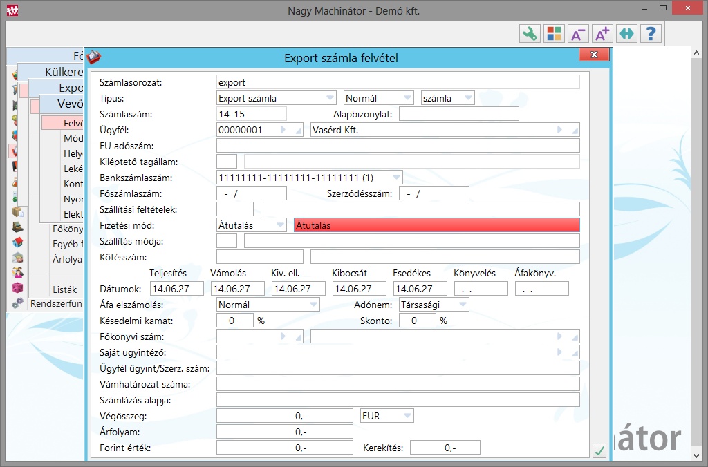 Az export és az import számlákba is bekerült a fizetési mód megadásának lehetősége. A fizetési mód alapján ajánl a program fizetési határidőt, illetve a számla szűrés és a pénztártétel generálás is figyelembe veszi a beállított fizetési módot. |