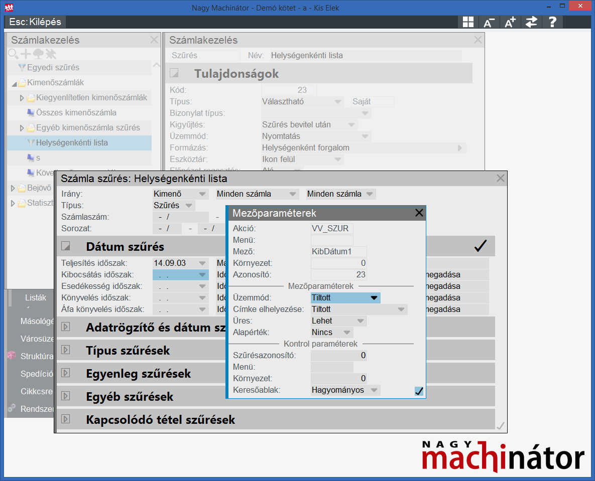 Egy szűrés létrehozása során be lehet állítani, hogy milyen mezők jelenjenek meg a szűrés kiértékelése előtt. A paraméterezést szűrésenként a Szűrés tulajdonságaiban Mezőparaméterezéssel lehet beállítani. |