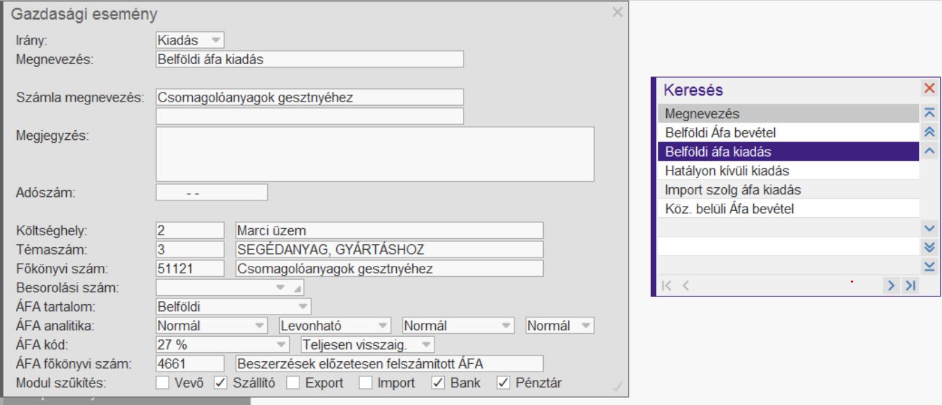 A főkönyv struktúra beállításaihoz tartozó Gazdasági eseményeket lehetőségünk van már nem csak egy konkrét modulhoz kapcsolni, hanem az összes használó modul közül tudunk akár többet is választani. Természetesen a szűkítés továbbra sem kötelező. |