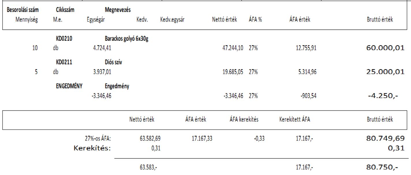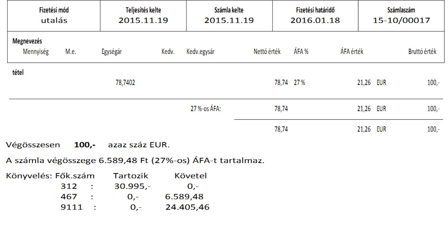 Az export számlán is meg lehet jeleníteni a Kontírozás = Értékkel paraméter hatására a kontírszámokat és azon forintra átszámolt értékeit. A nettó és bruttó a VPI árfolyamon, az áfa az áfa árfolyamon lesz átváltva.. |