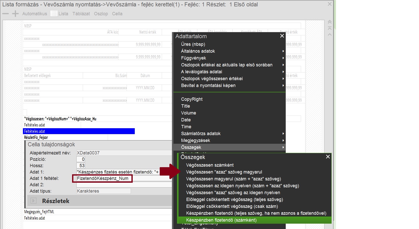 Lehetőség van a formázott bizonylatokon a tizedes értéket ponttal, ill. az ezres tagolást vesszővel jelölni. Ezeket a Lista tulajdonságokban lehet beállítani. Elkészült egy progenes vevőszámla ezekkel a beállításokkal (3000006030). Az ezt használó bizonylatokon az "Összegek" blokkból a numerikus érték mezőkre van hatással a beállítás, azaz ki kell cserélni a karakteres adattípusokat numerikusra. Azonban az olyan mezőket melyek értéke bizonyos esetekben nem kell, hogy megjelenjen (pl. nem készpénzes a fizetési mód), feltétellel kell ellátni, és ekkor egy mezőben (hozzáadással) kell megjeleníteni az érték megnevezését és magát az értéket, nem pedig a teljes szöveges változatot használni.