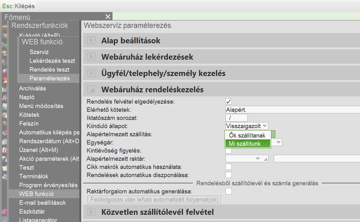 Webáruház rendelés-kezelésnél megadható alapértelmezett szállítás |