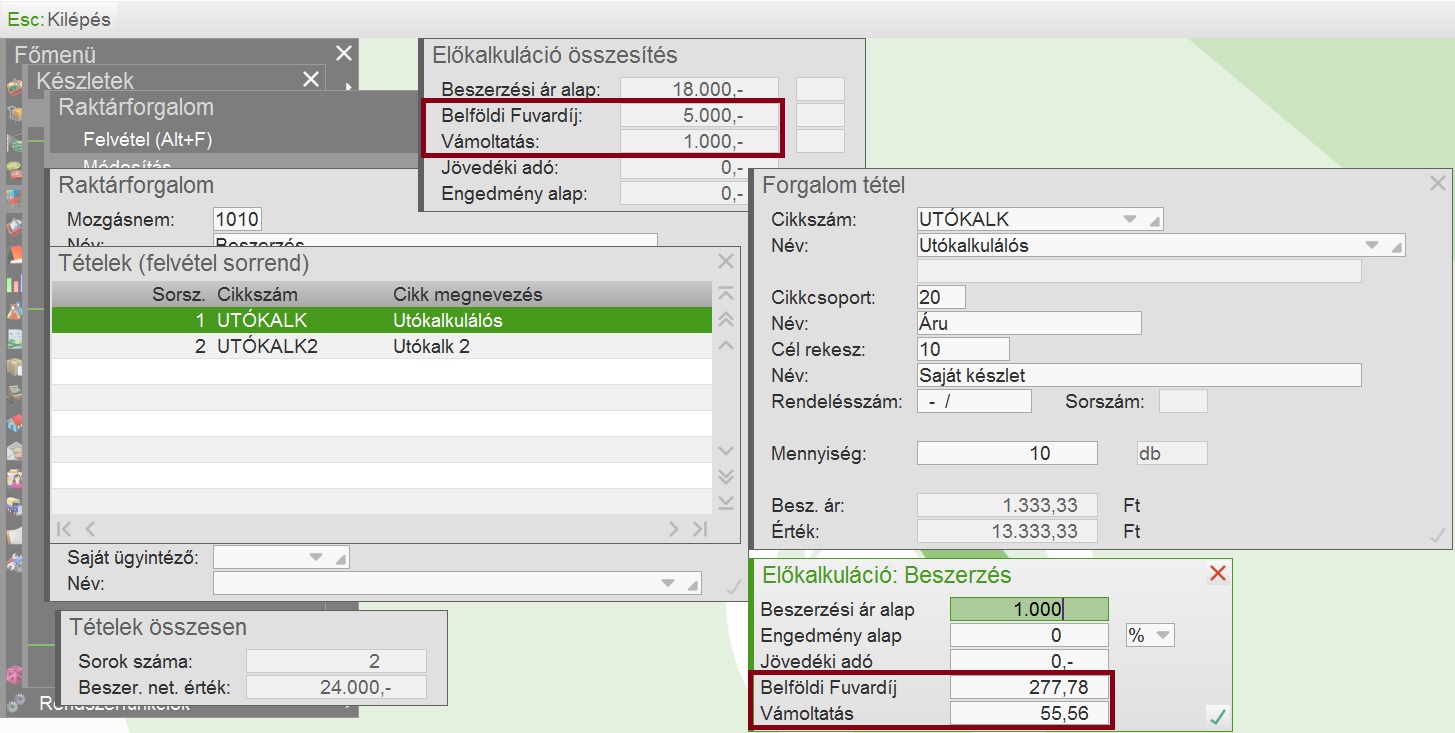 Beszerzési mellékköltség kalkulálás |