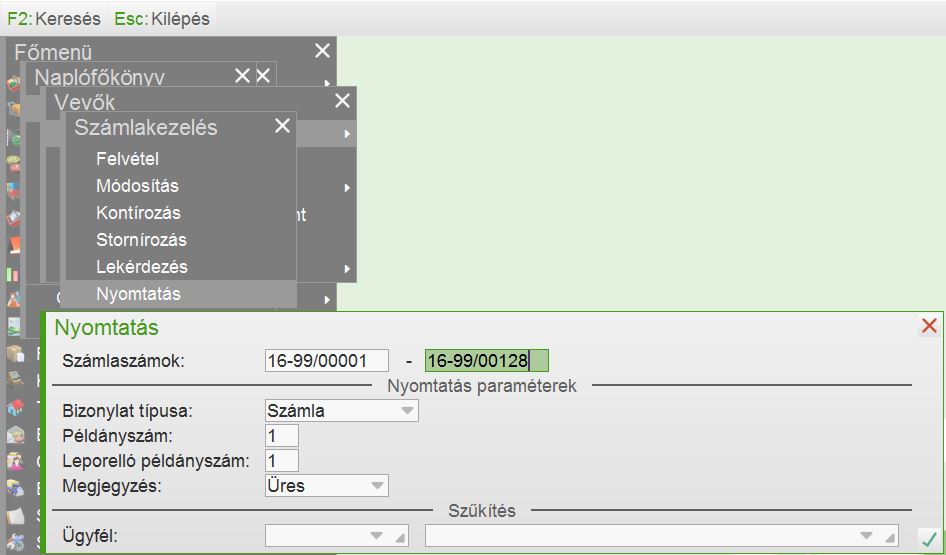 Finomítottunk a naplófőkönyvben készített vevőszámlák alapján készítendő NAV adatszolgáltatás folyamatán. A NAPLO menüben (frissítéssel kerül az ügyfélhez) létrehoztunk egy új menüpontot, amely képes csoportosan nyomtatni a modulban készített számlákat. Javasolt ezzel a menüponttal az összes idén kibocsátott számlát újranyomtatni. A menüpontot menümódosítással át kell másolni a használt (nem frissülő) saját menükbe. Természetesen a használt menüben ott kell lennie a NAV adatszolgáltatás menüpontnak is. |