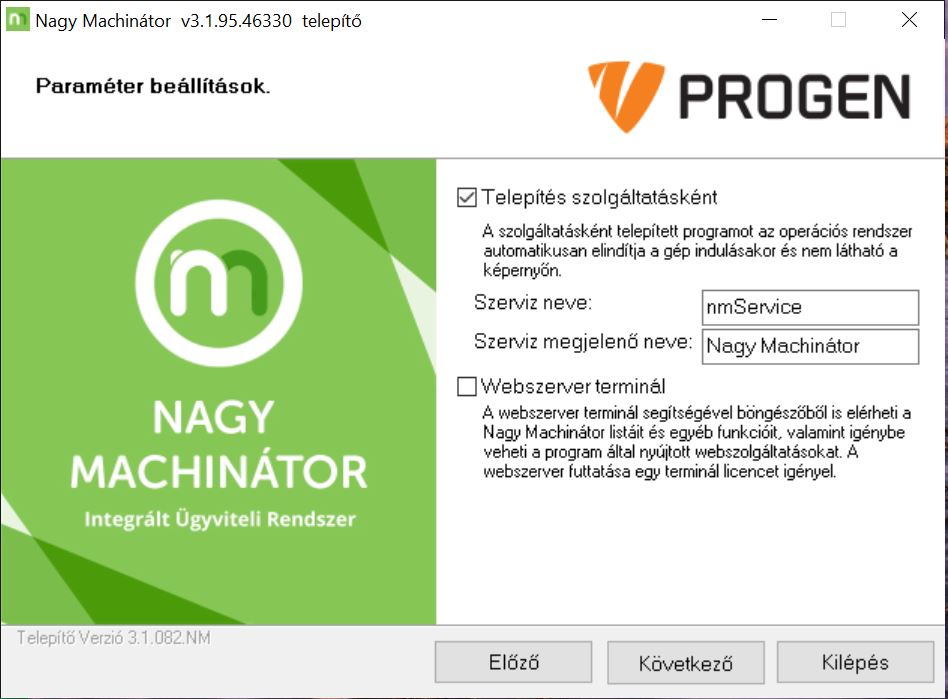 A Nagy Machinátor szerver telepítése vagy frissítése során lehet egy oldalon "bepipálni", hogy a szervert szolgáltatásként telepítsük fel.