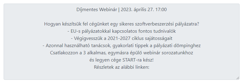 Például ezen keresztül kaphat tájékoztatást meghirdetett webináriumokról.