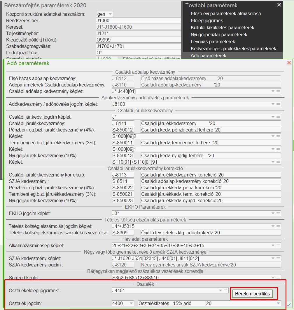 Amennyiben a frissítéskor már minden osztalékelőlegünk osztalékká vált, érdemes a bérelemeket egyszer osztalékká vált=igen értékre átállítani.