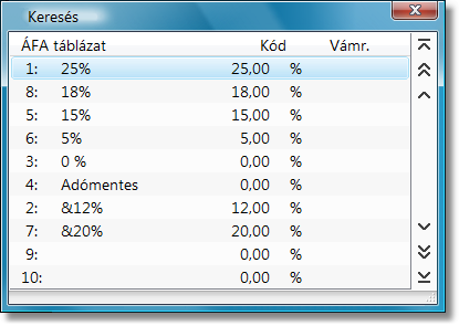 A bekonvertálandó állományok áfakódokat tartalmazó mezői egy százalék értéket tartalmaznak (pl.: 25). A program az Áfatáblázatban megkeresi az értéket és a megfelelő áfakóddal fogja rögzíteni a számlát. |