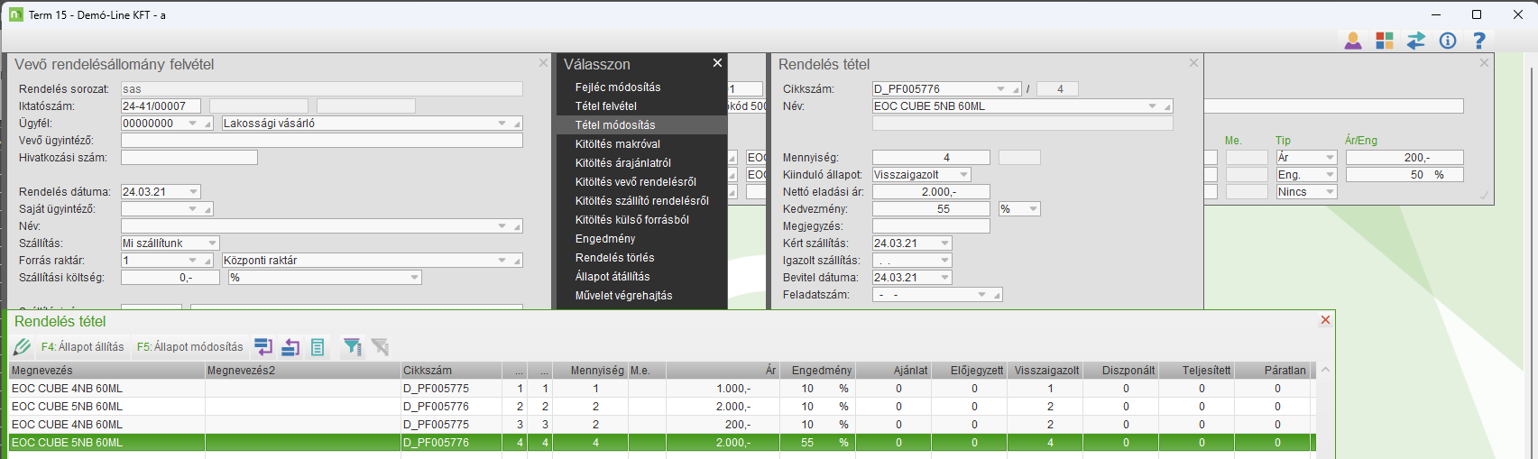Az érték használata esetén van ár és engedmény megadás a makróbevitelben, és működik a makró figyelembe vétele a rendelés rögzítése során. |