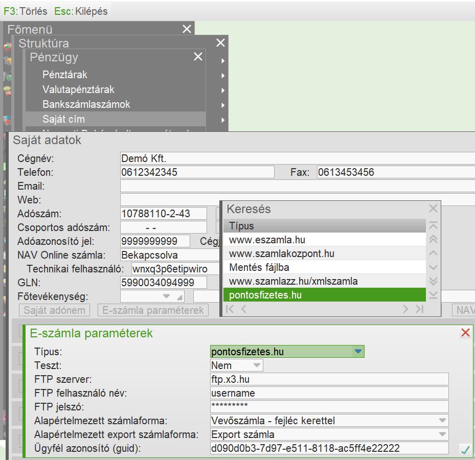 A funkcióval a Machinátor a nyomtatott vevő, ill. export számlák képét PDF-ben és APEH formátumú XML-ben felküldi egy megadható FTP szerverre.