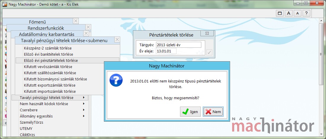 Az akcióval az előző évi, nem készpénz típusú pénztártételeket törölhetjük.