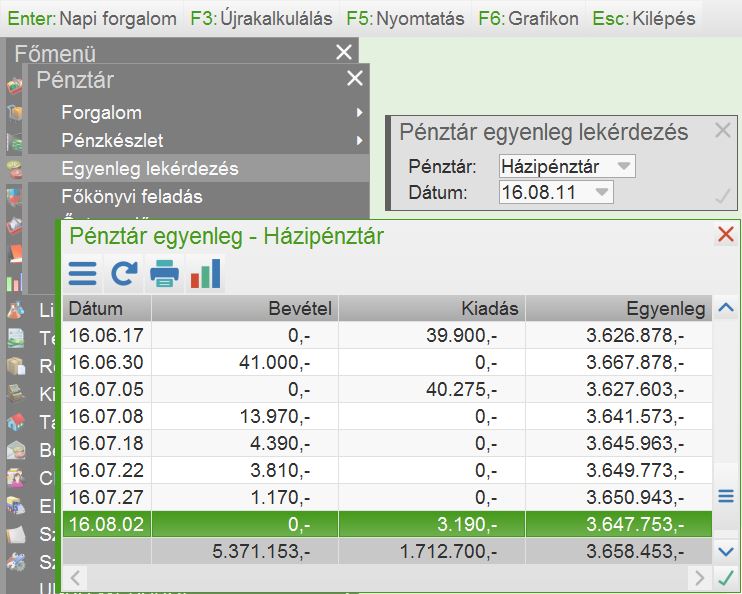 A pénztár egyenlegét generálja újra a program a forgalom alapján. |