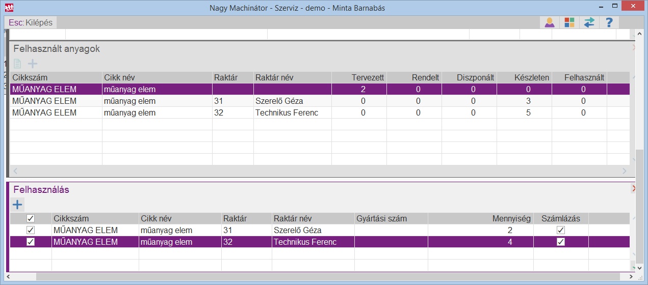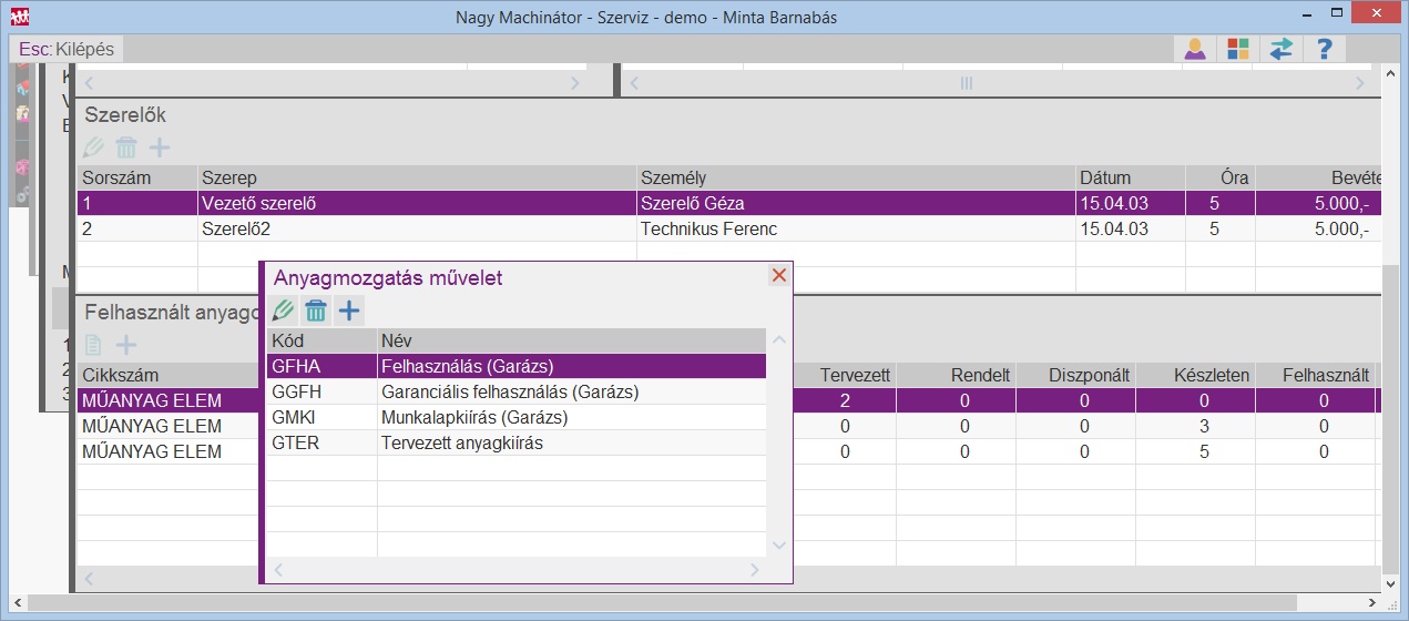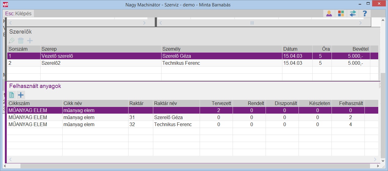 Miután a szerelők elvégezték a munkát az adminisztrátor rögzíti a felhasznált anyagokat és a tényleges munkaidőt.