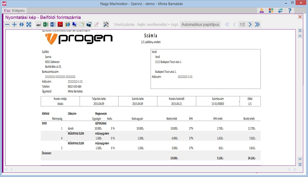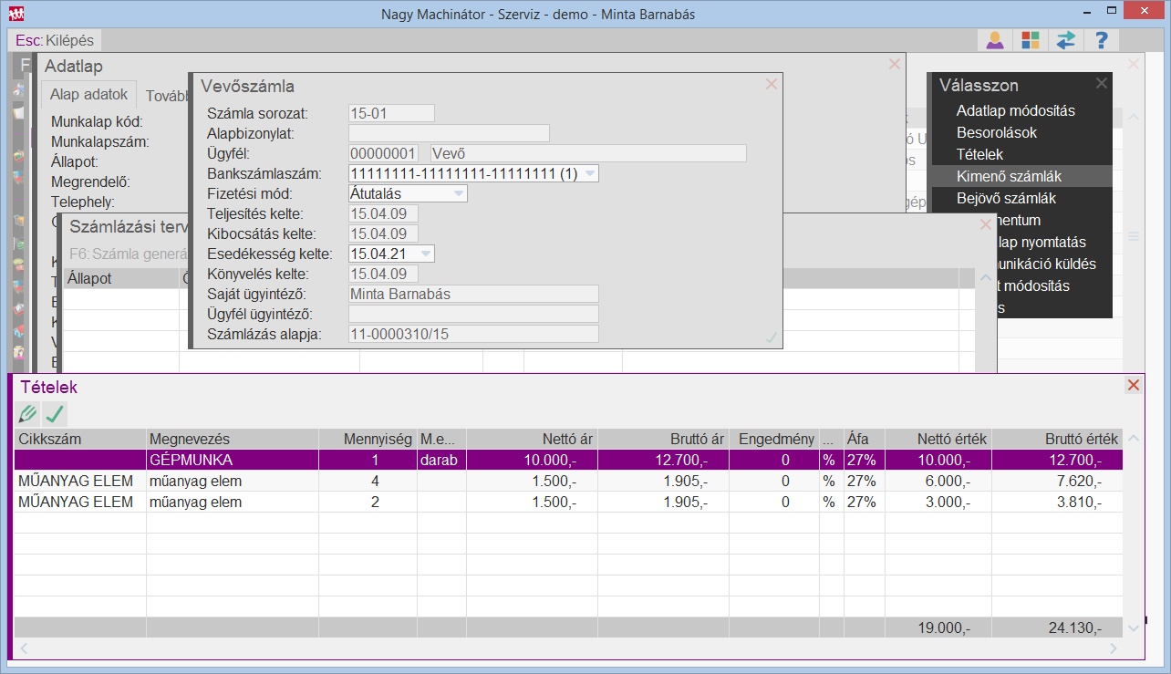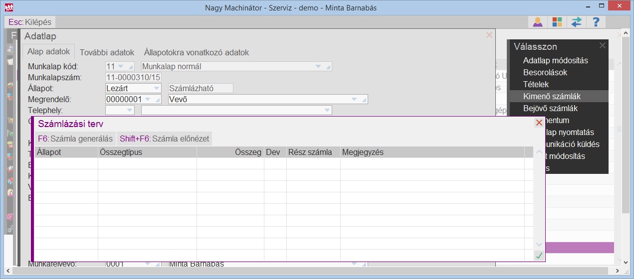 Ebben az ablakban látható, ha már lenne számla generálva a munkalaphoz.