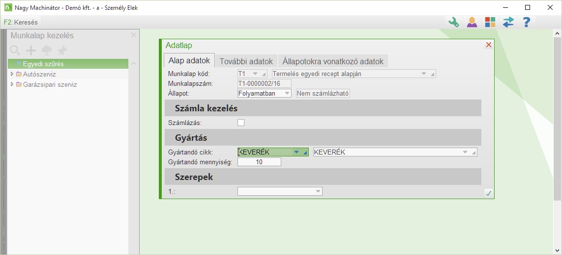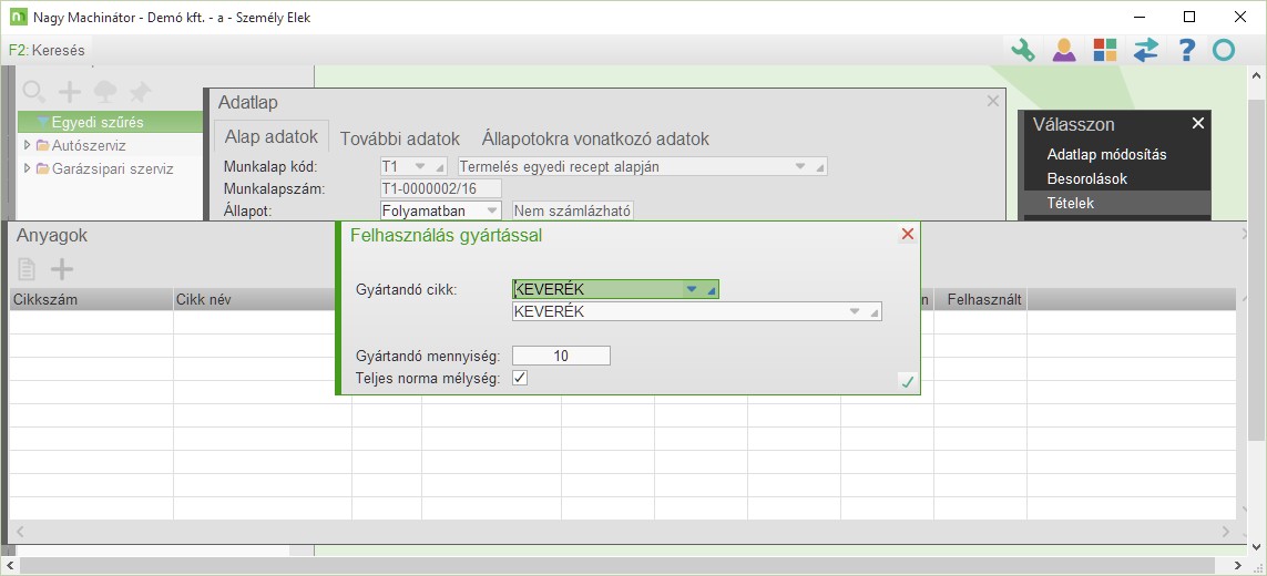 Gyártási utasítást adnak olyan termék gyártására, amelynek a nincs előre meghatározott receptúrája.