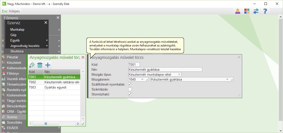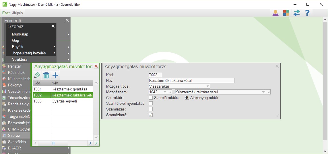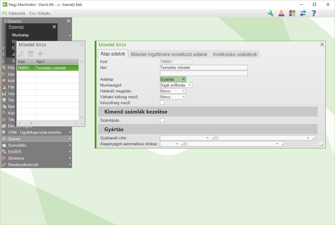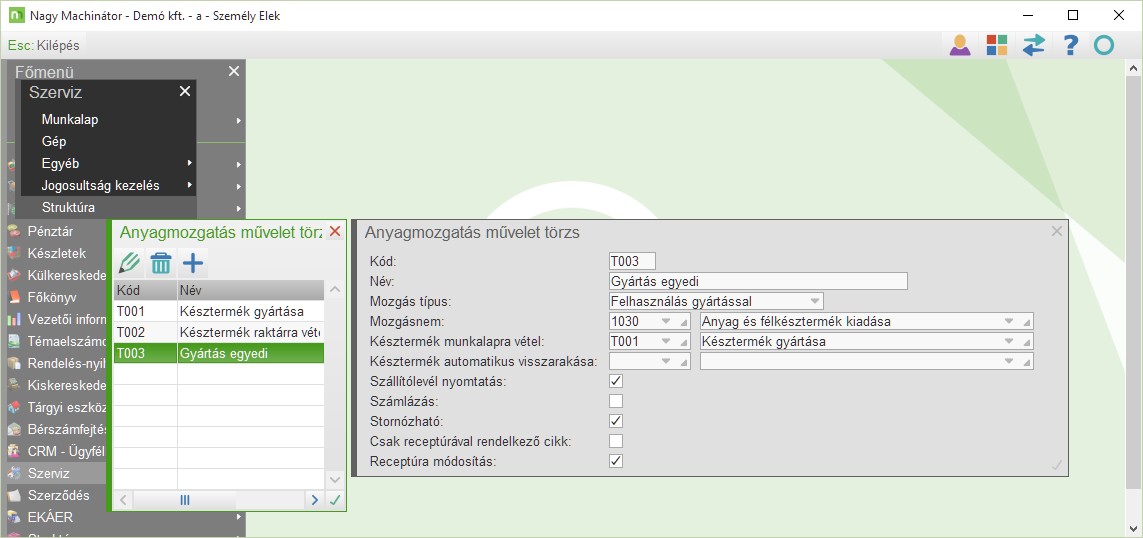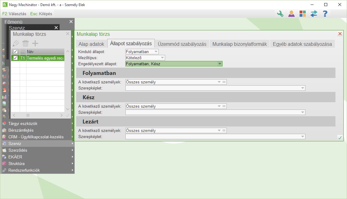 Navigáció: Szerviz modul (SM) > Folyamatok