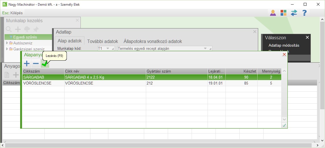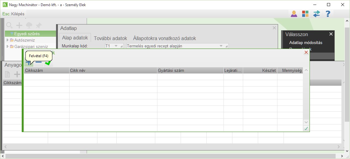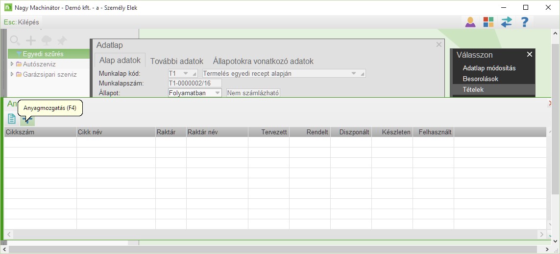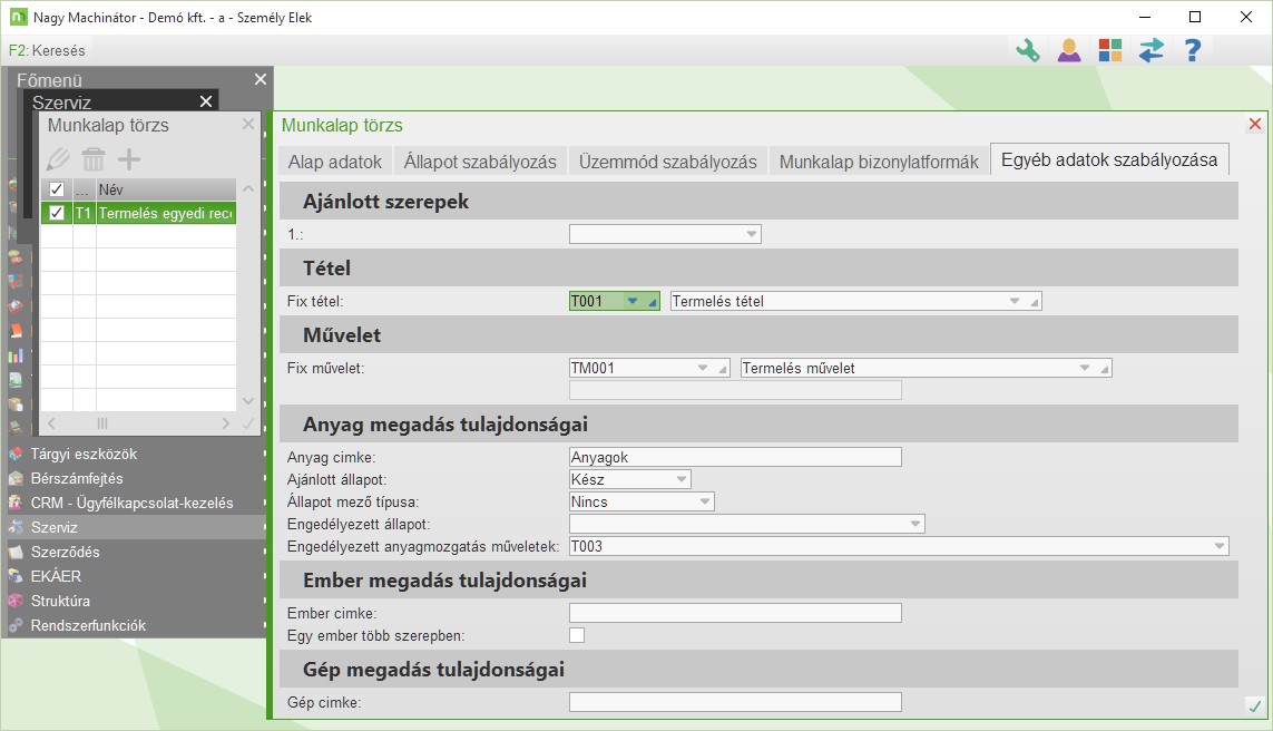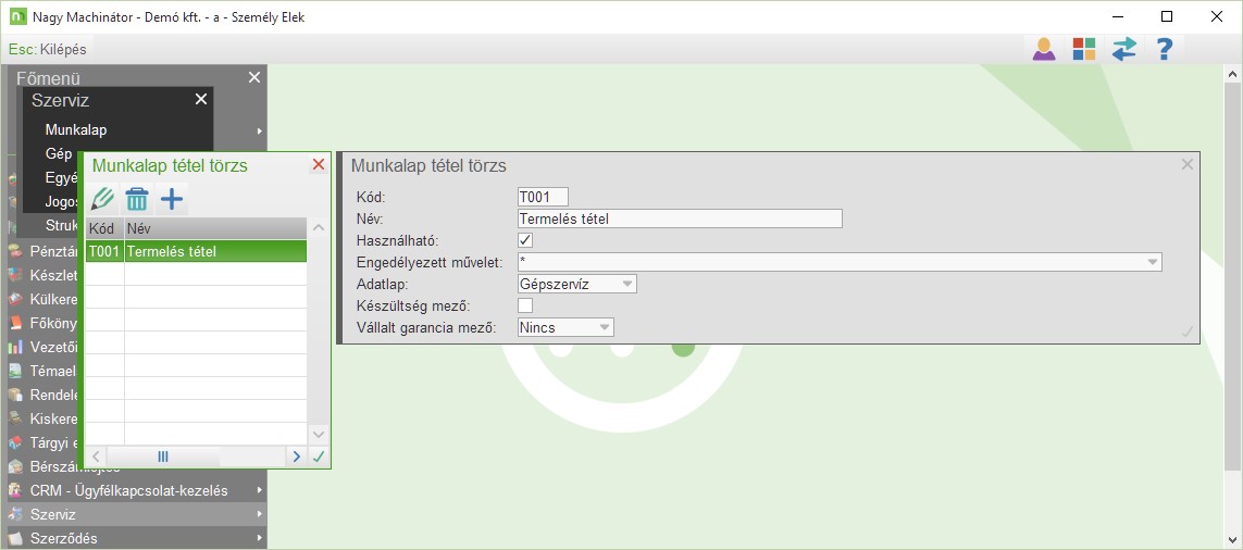 Navigáció: Szerviz modul (SM) > Folyamatok