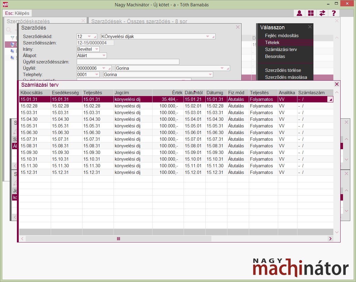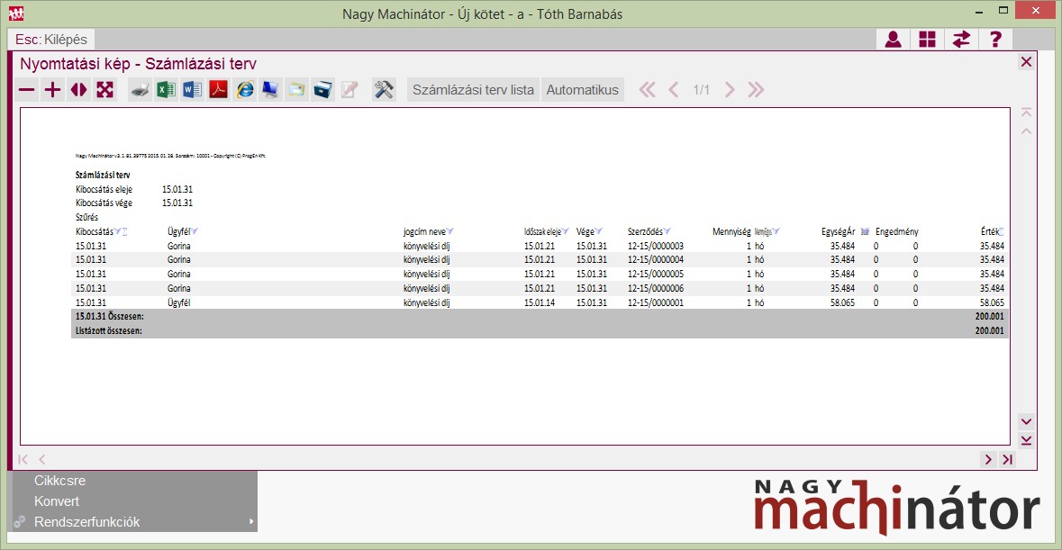 Mivel a program a számlázási terv alapján számláz, a lista arra is alkalmas, hogy saját maga előtt "legyártsa" a számlázási tervet.