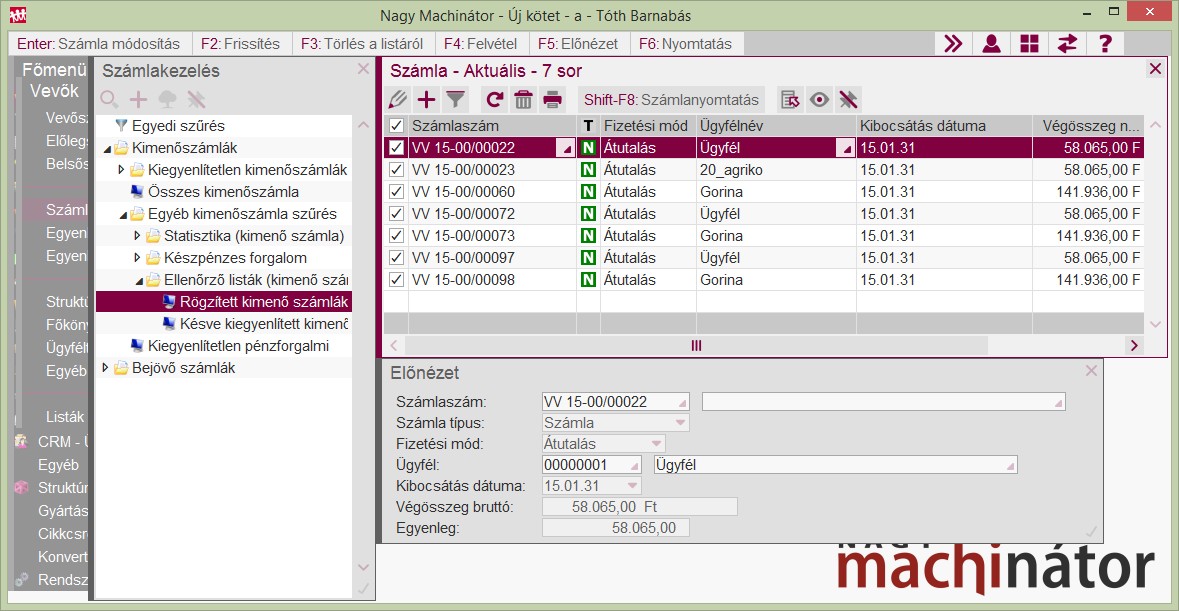 Ebben az esetben hasznos lehet a képen látható beállításokkal a számlaszűrés futtatni és a számlanyomtatás műveletet el lehet indítani.