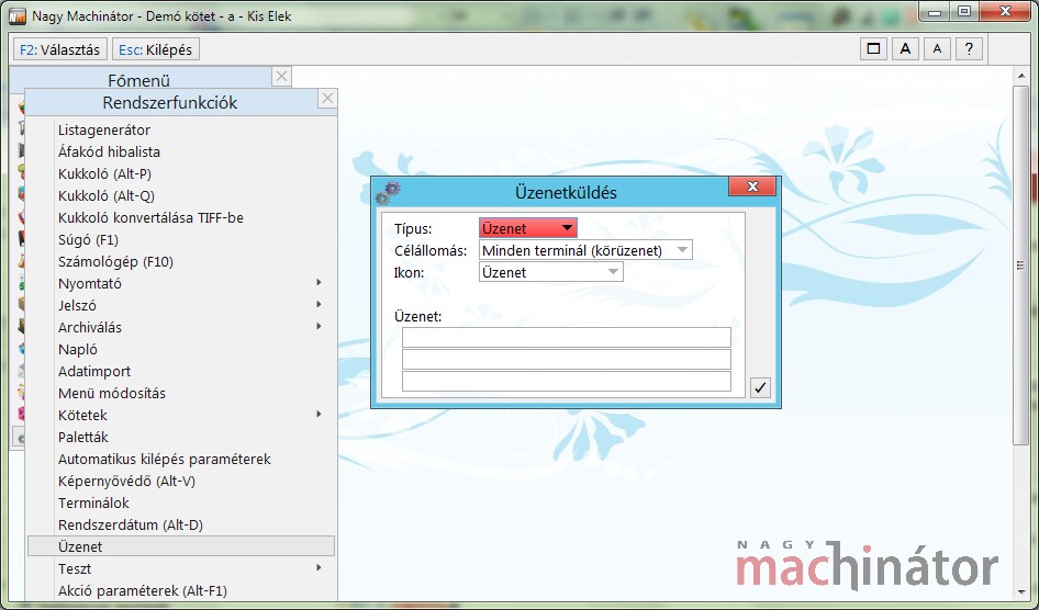Például figyelmeztető feliratot szeretnénk kapni valamennyi terminál képernyőjén, ha valaki belép a vevők - számlakezelés - módosítás menüpontba: