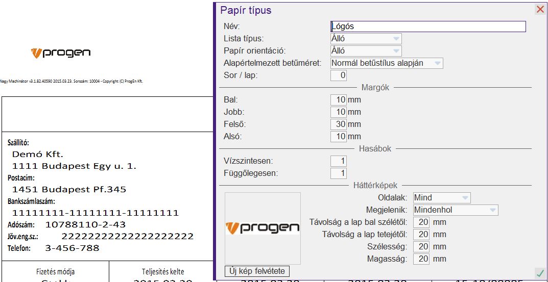 A papírtípussal a nyomtatási kép és nyomtatás műveletet esetén lehet befolyásolni a megjelenő kép elrendezését.